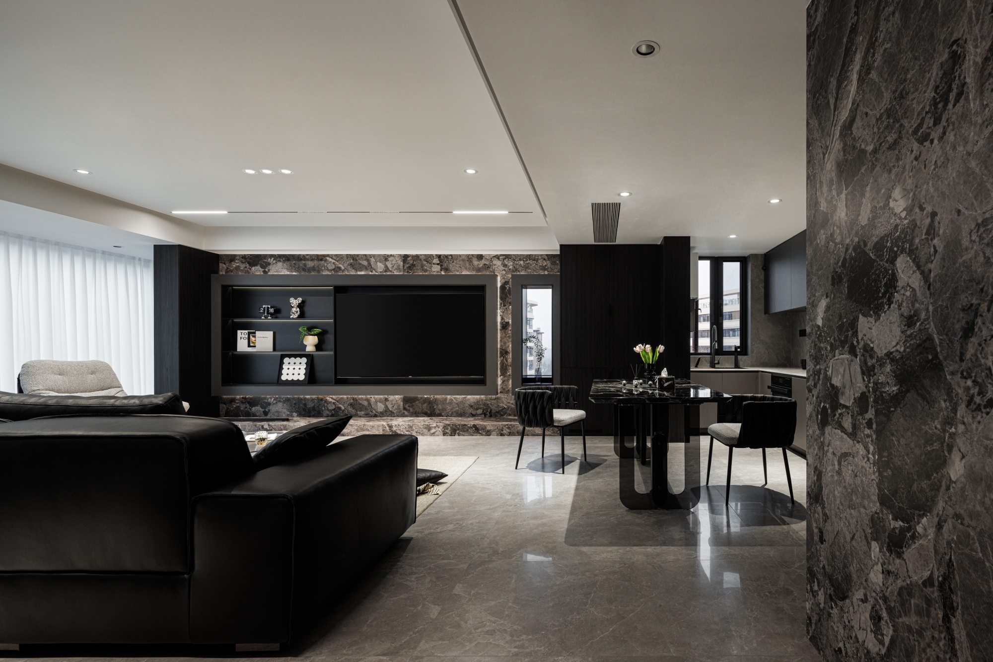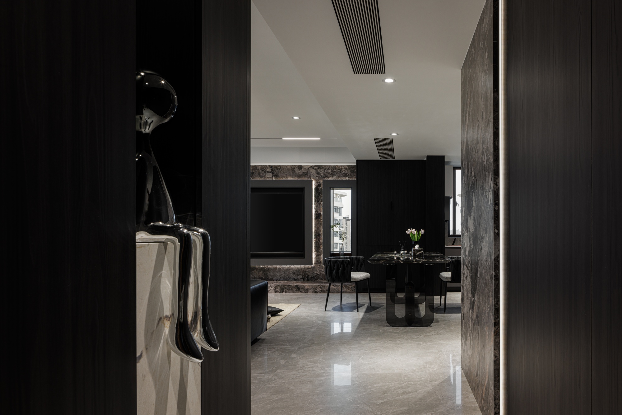 家是生活的容器,亦是精神的栖息地。与业主深入沟通后,设计师从极简设计内核出发,以自带神秘沉静属性的“黑”作画布,勾勒出一个兼具美学与功能、陪伴成长的家。