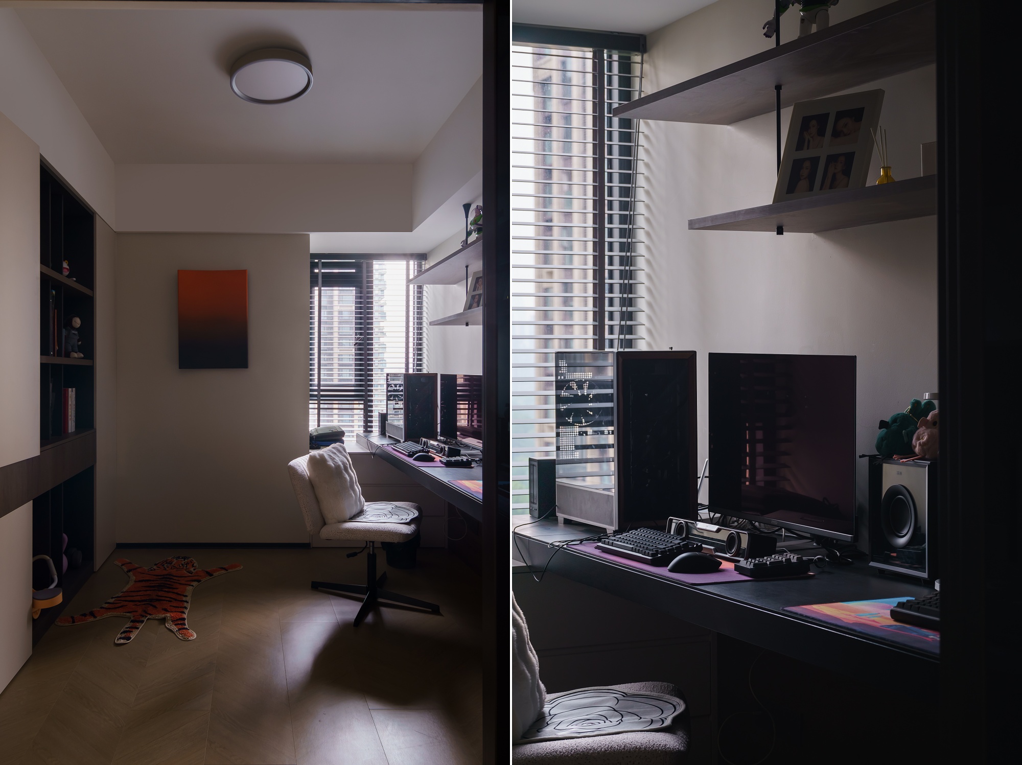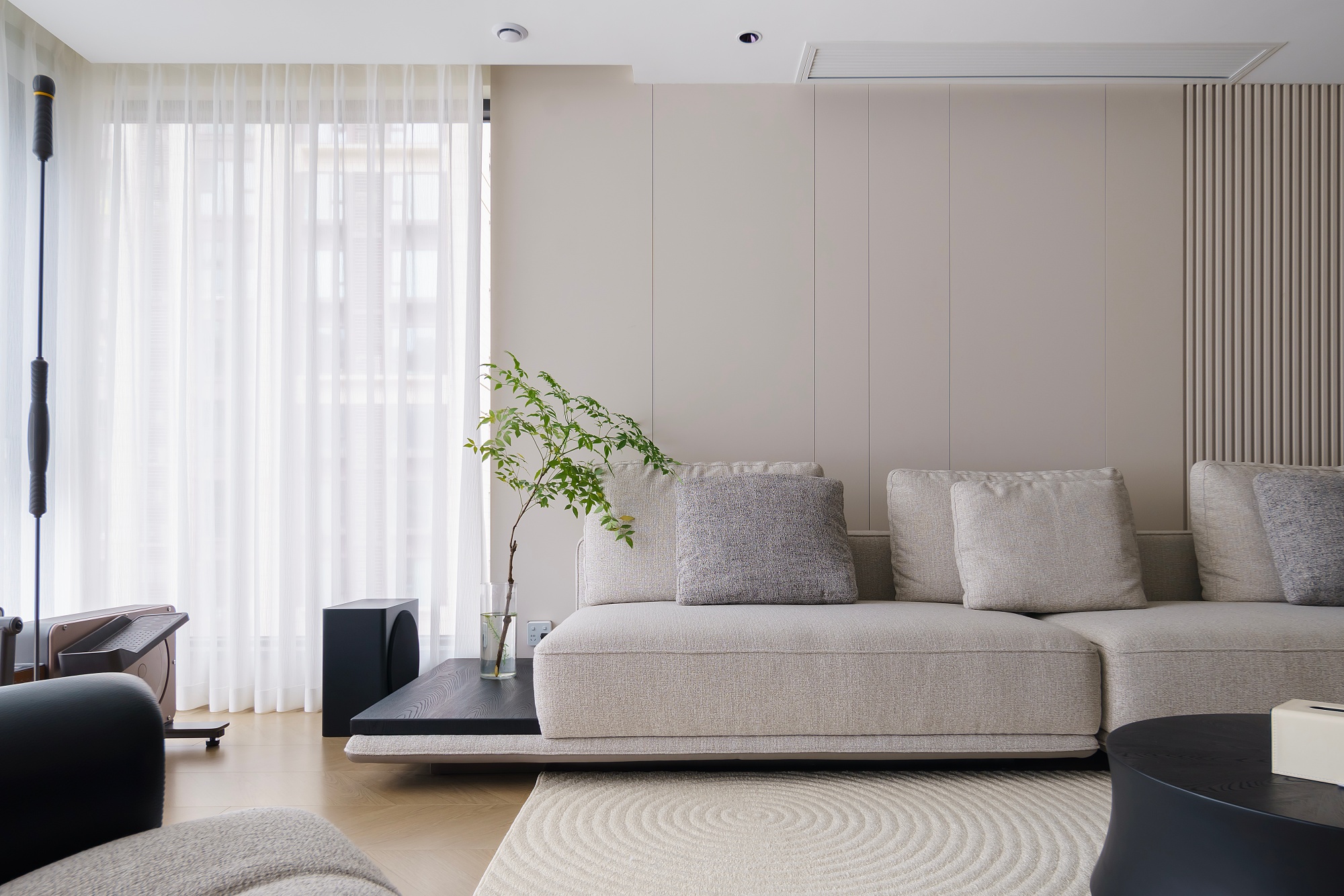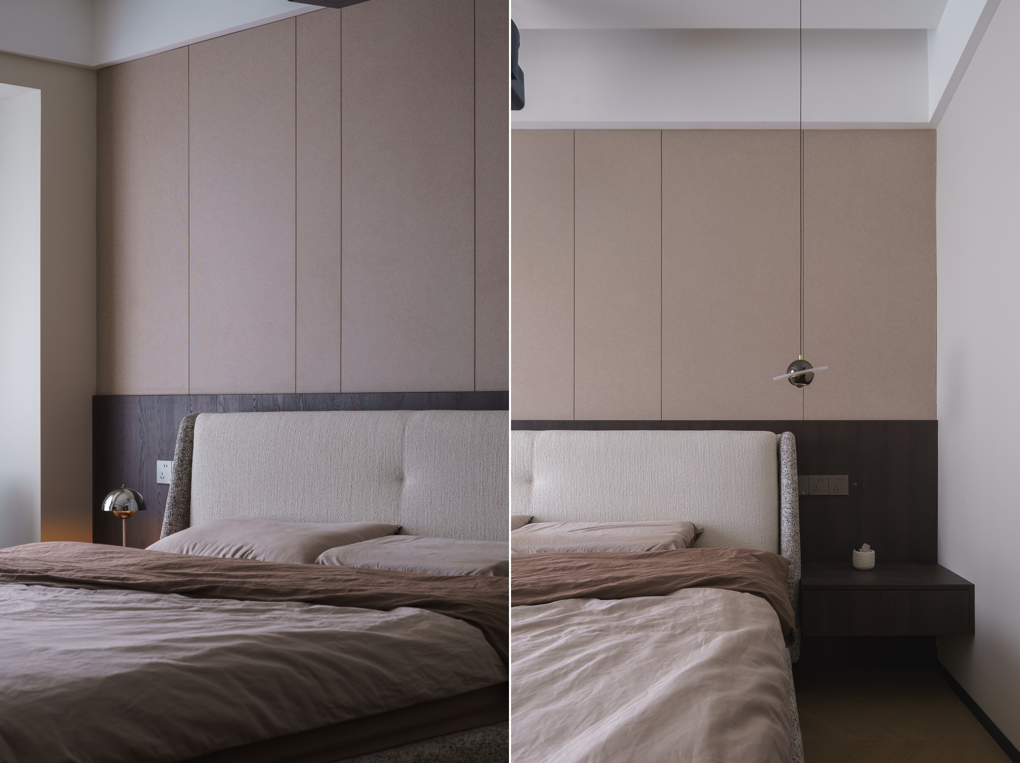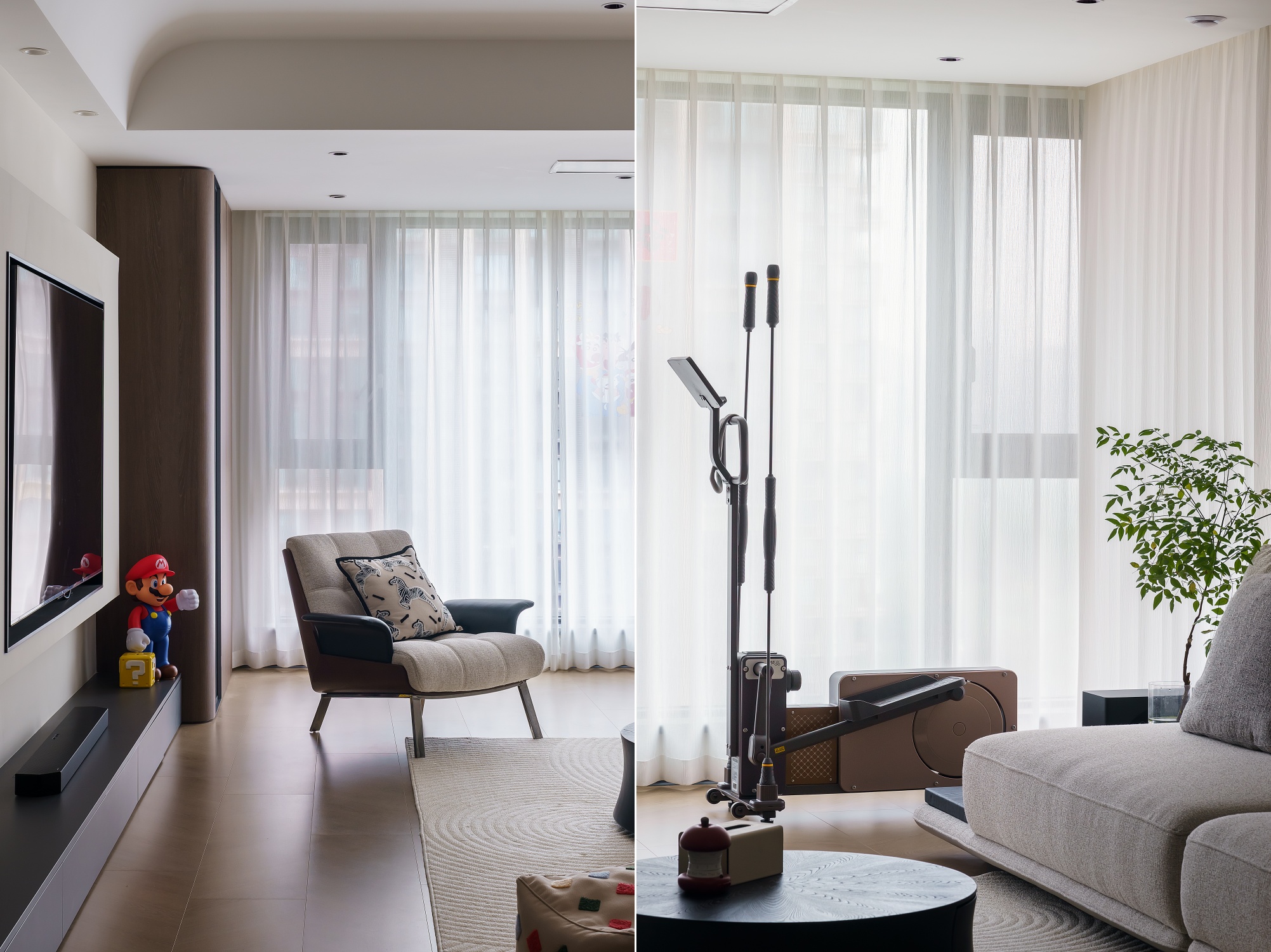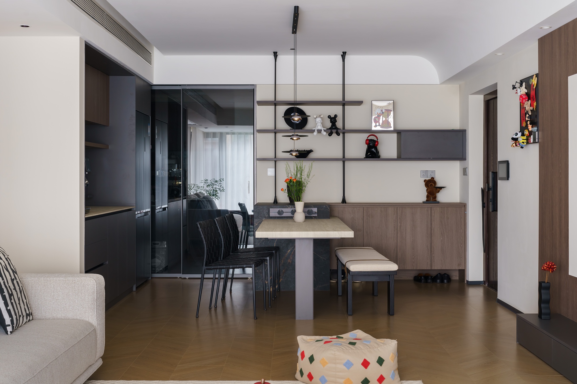 设计师重新构思空间动线,从业主的日常习惯出发,将公区各个空间,以材质与色彩巧妙串联、自然划分。动线流畅,行坐开阔而自由,容纳得起多样的生活场景。休憩区域则专注于舒适度的提升,最终打造出这个盛满习惯、温度与爱的居所。