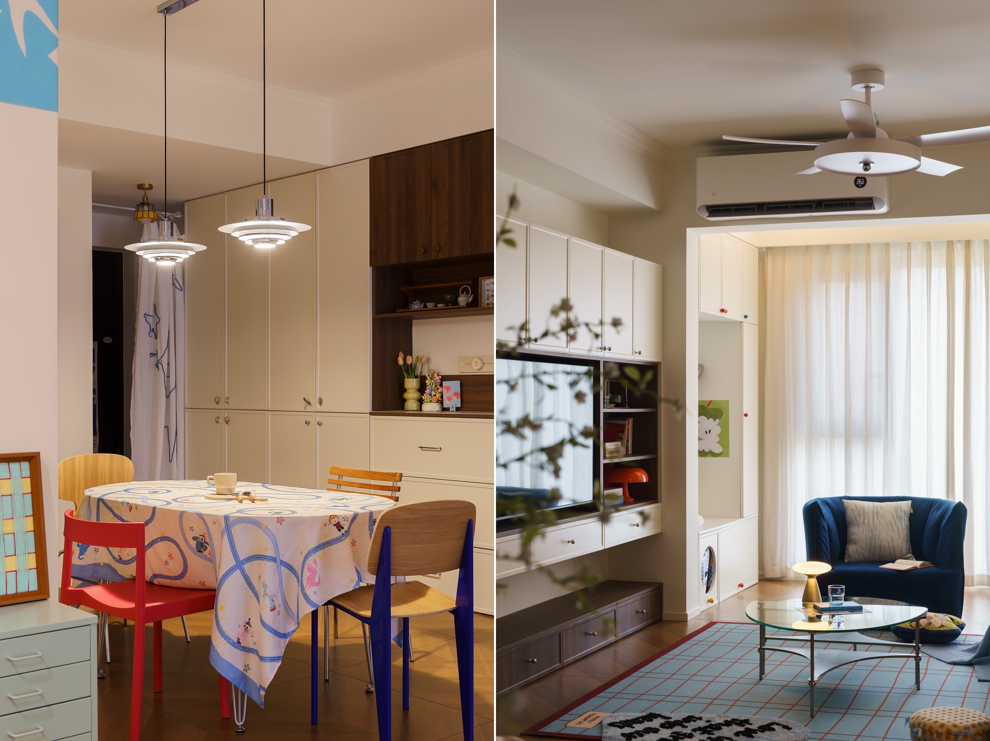原始空间的划分难以满足业主的实际需求,设计师通过移墙整合、功能定制与动线调和,将套三改套二,充分释放户型潜力,补足功能短板。在此基础上,业主整体把控色彩质感丰富的软装,巧妙点缀各个角落,为整个空间注入生机与活力,慢慢显露这个家最舒适的样貌。