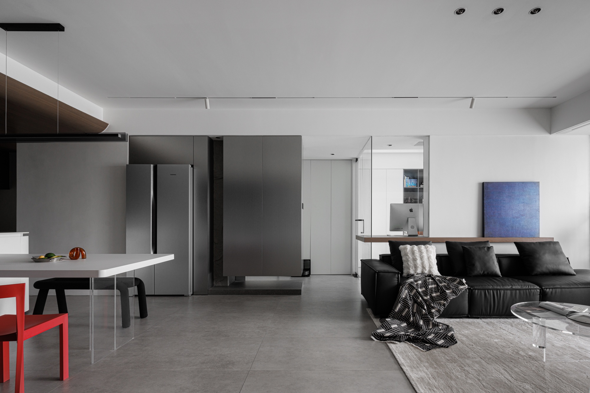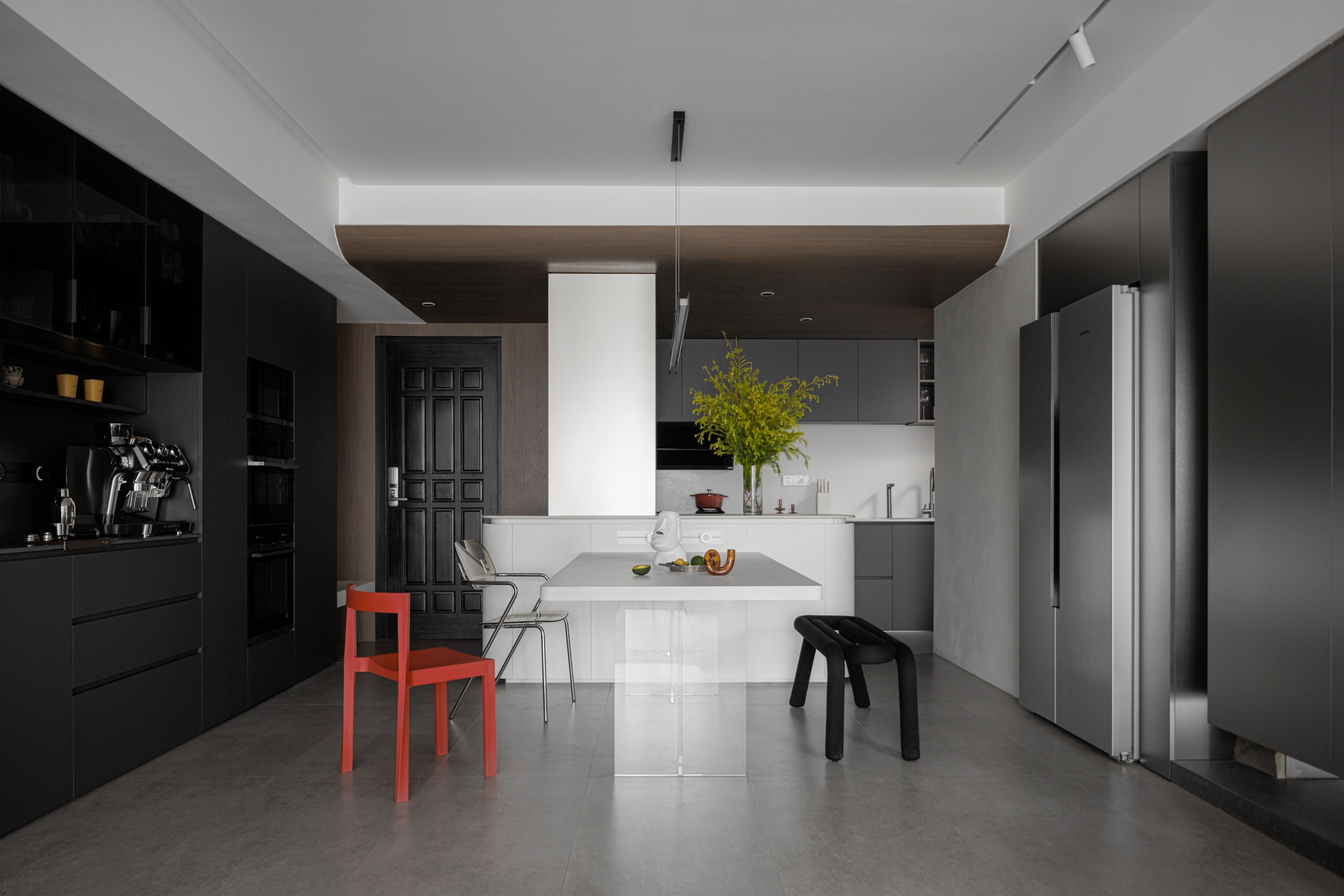 业主对于新家生活场景从一开始就有着极为全面主动的设想——想要客餐厨全开放、敞亮的小花园、独立办公区、动线自由......当设计师以清晰的设计语言将这些构思融入空间,具有独特魅力的家开始具象化。