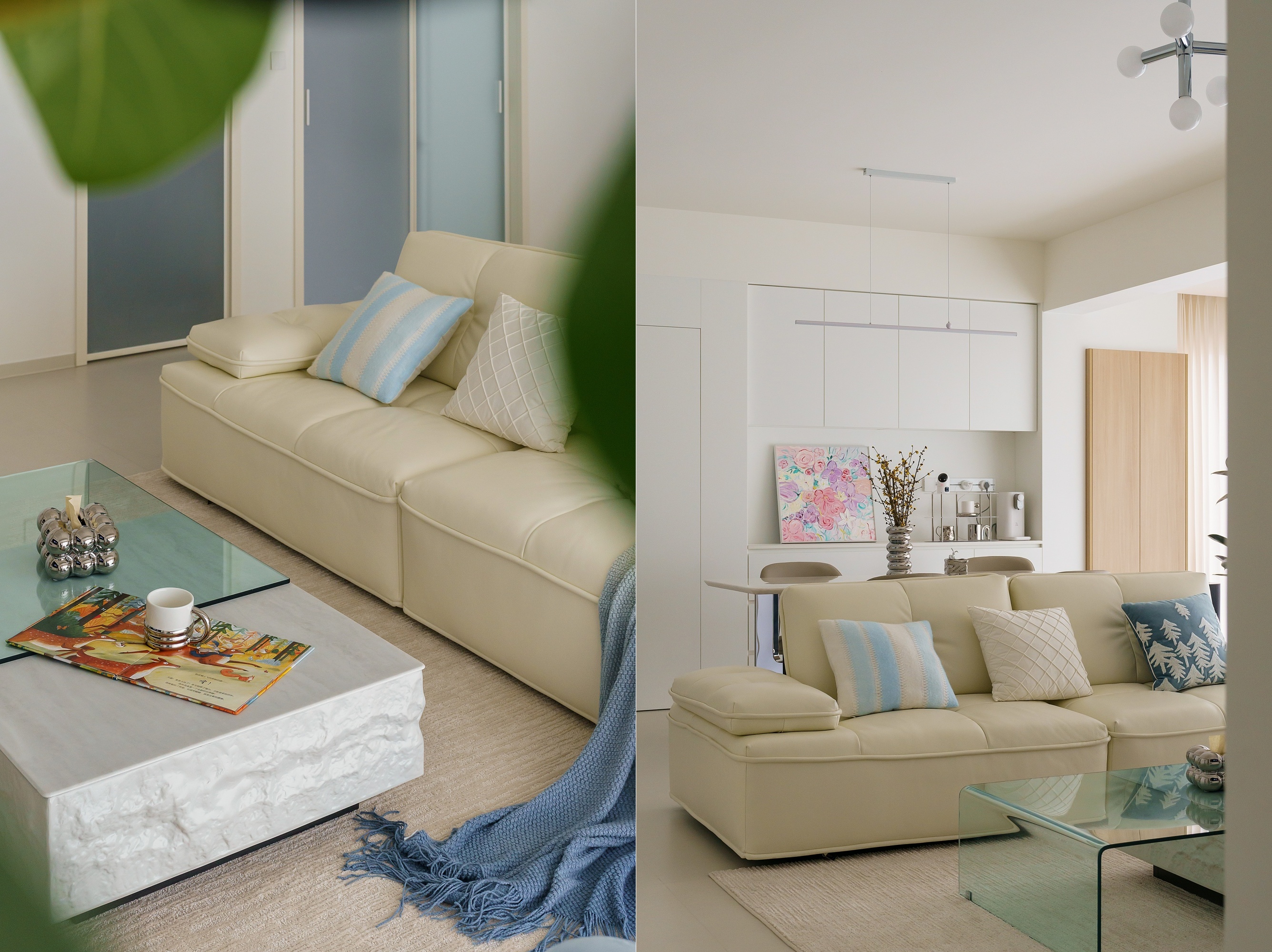 本次案屋主追求空间的灵活度与流畅度,设计师深度贴合客户居住需求,在硬装上注重收纳和展示功能,重构空间布局,梳理流畅动线,让奶油现代风的温柔质感与居家的松弛感,渗透到每一个角落。