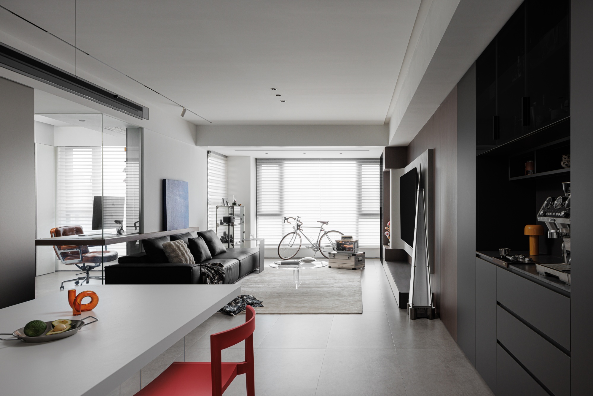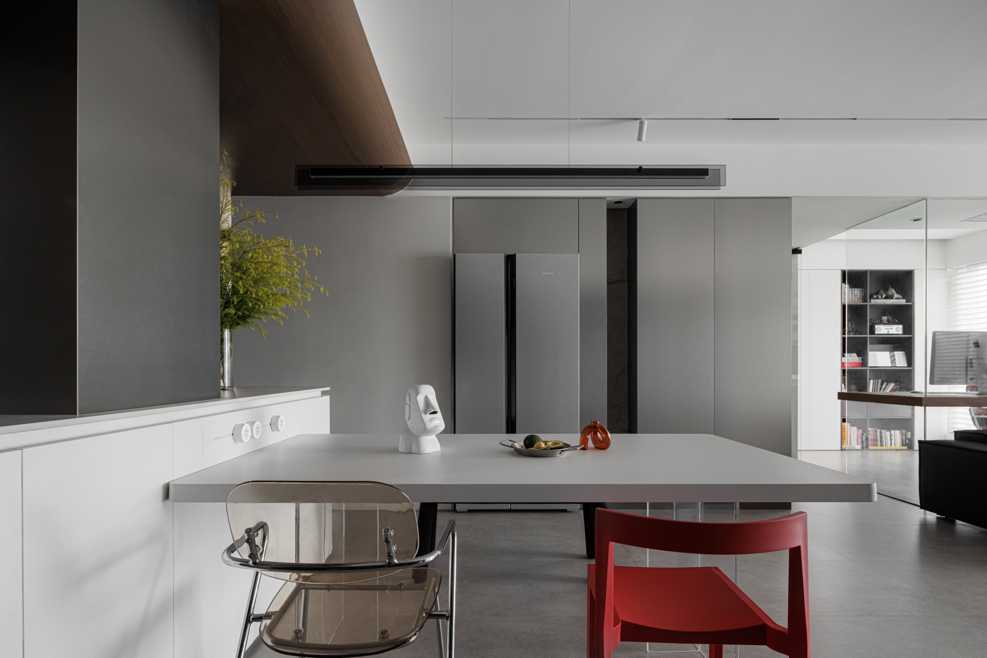 业主对于新家生活场景从一开始就有着极为全面主动的设想——想要客餐厨全开放、敞亮的小花园、独立办公区、动线自由......当设计师以清晰的设计语言将这些构思融入空间,具有独特魅力的家开始具象化。