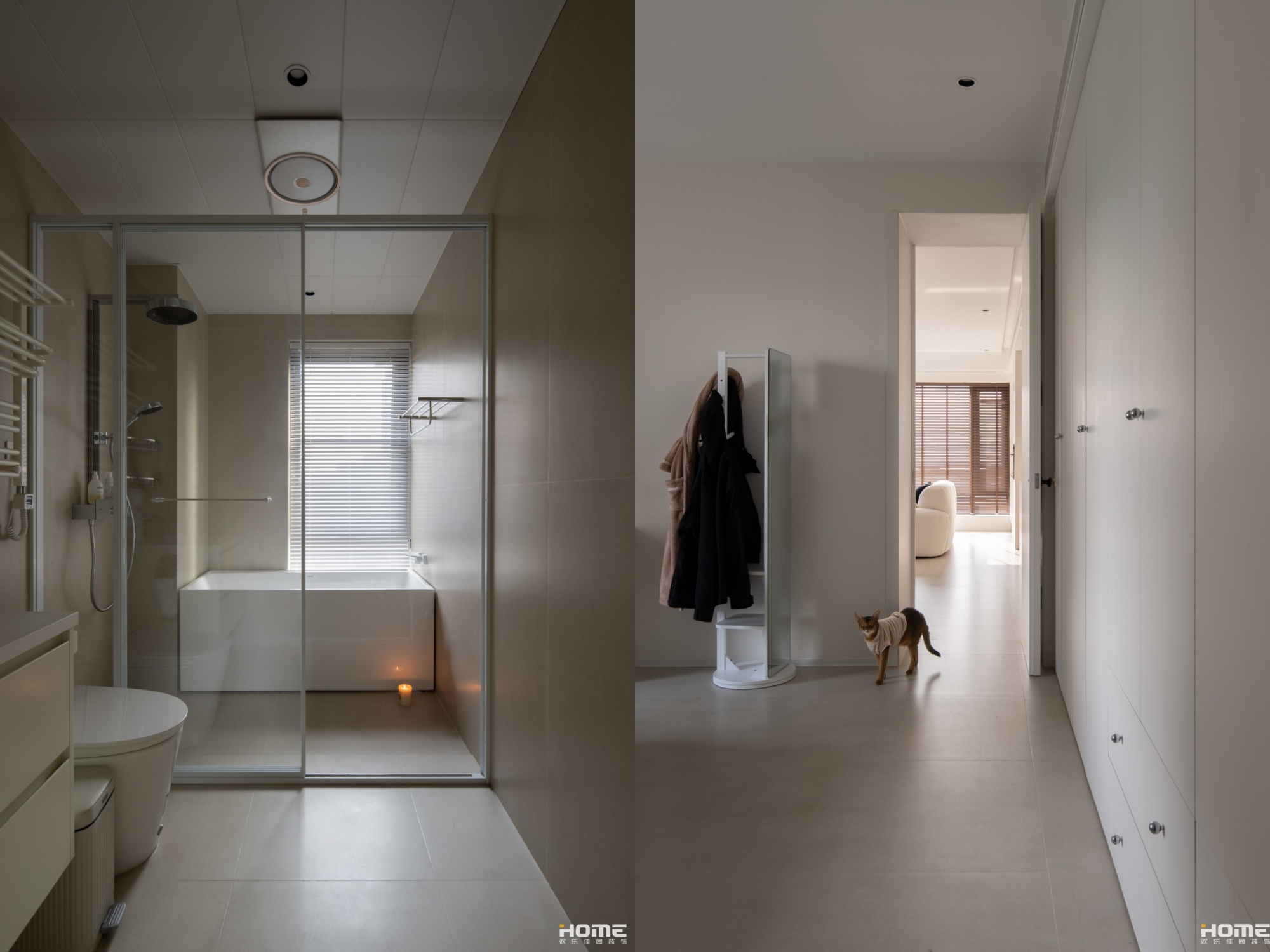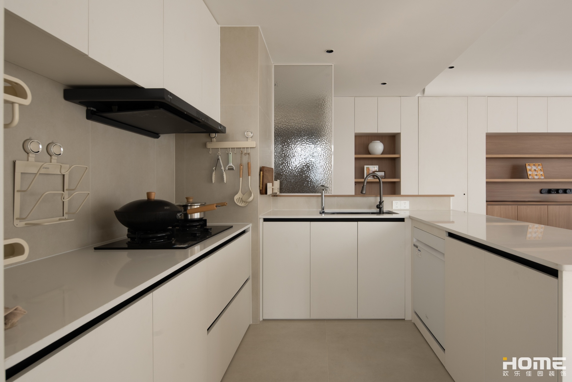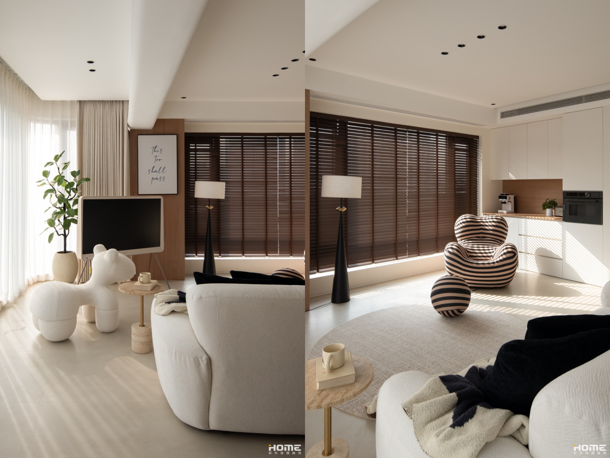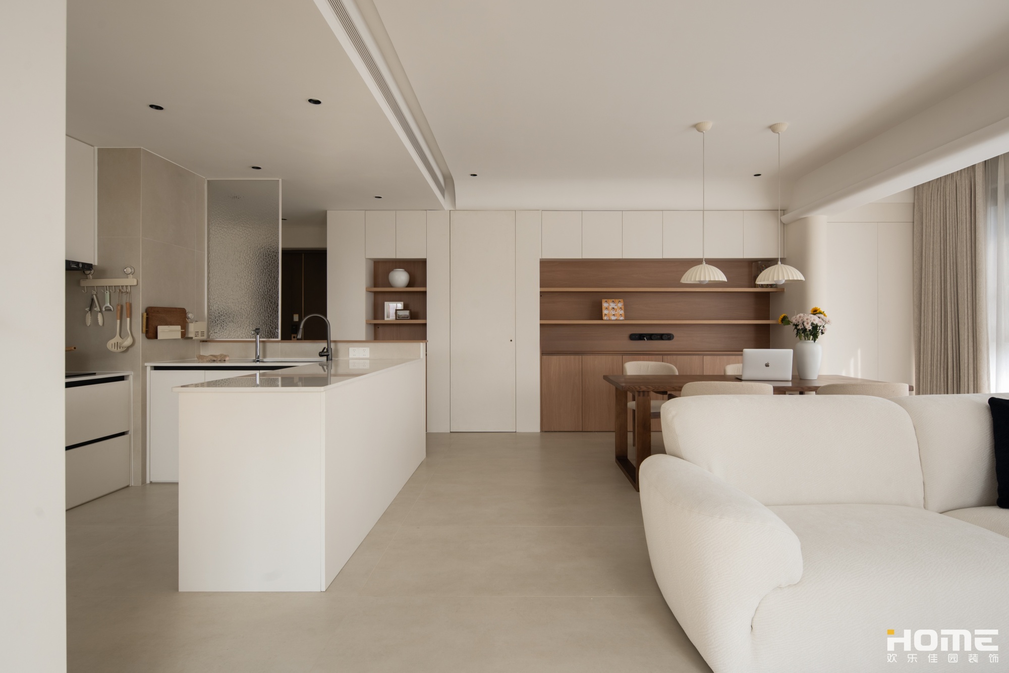 本案围绕“开放与联结”展开设计,开放式客餐厨设计,以流畅的动线打破隔阂,在扩大空间视野的同时,也赋予起居生活更多元的可能。开放式的布局不仅带来通透的视觉体验,更让家人之间的互动随时发生——烹饪、用餐、休闲、交谈,生活在同一个画面里自然流转。