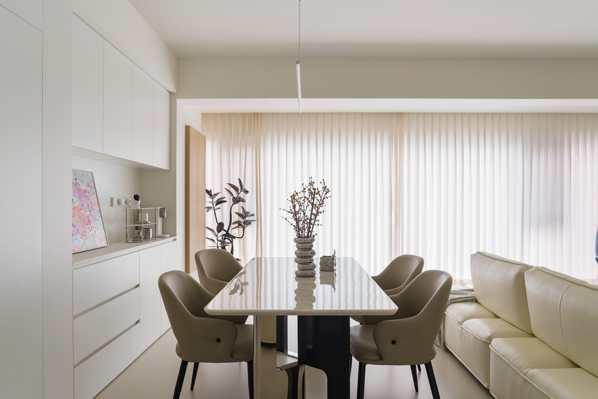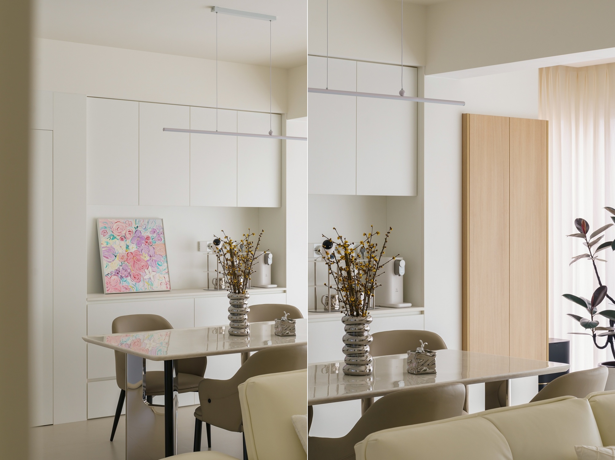 本次案屋主追求空间的灵活度与流畅度,设计师深度贴合客户居住需求,在硬装上注重收纳和展示功能,重构空间布局,梳理流畅动线,让奶油现代风的温柔质感与居家的松弛感,渗透到每一个角落。